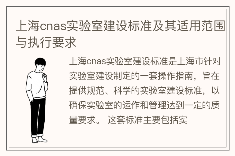 上海cnas实验室建设标准是上海市针对实验室建设制定的一套操作指南,旨在提供规范、科学的实验室建设标准,以确保实验室的运作和管理达到一定的质量要求。 这套标准主要包括实......【点击详情】