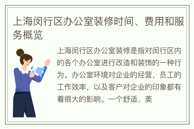 上海闵行区办公室装修是指对闵行区内的各个办公室进行改造和装饰的一种行为。办公室环境对企业的经营,员工的工作效率,以及客户对企业的印象都有着很大的影响。一个舒适、美......【点击详情】