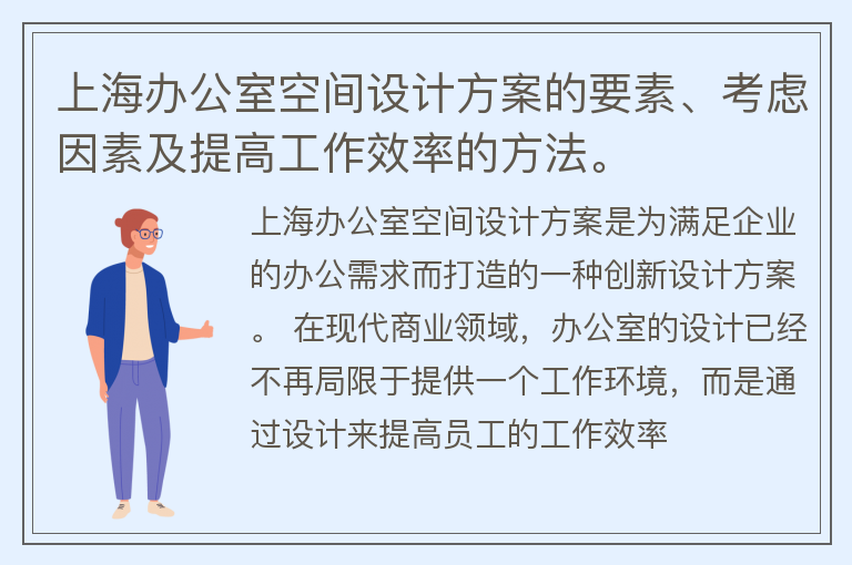 上海办公室空间设计方案的要素、考虑因素及提高工作效率的方法。