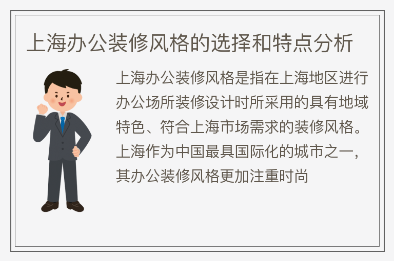 上海办公装修风格是指在上海地区进行办公场所装修设计时所采用的具有地域特色、符合上海市场需求的装修风格。上海作为中国最具国际化的城市之一,其办公装修风格更加注重时尚......【点击详情】