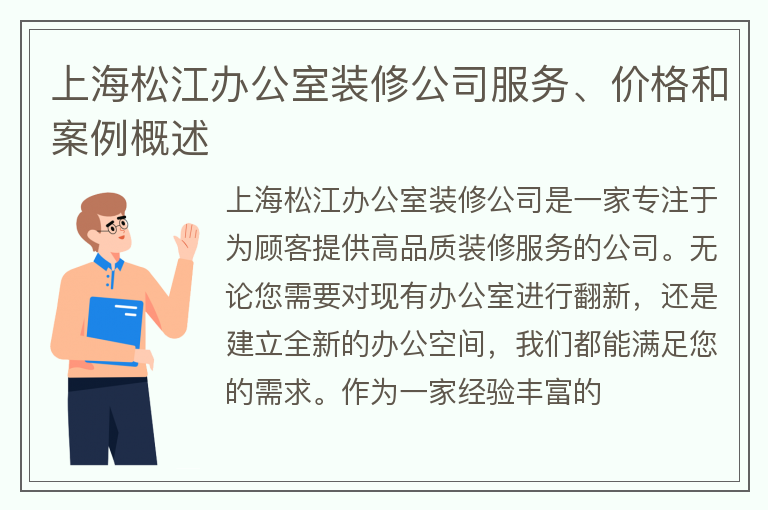 上海松江办公室装修公司是一家专注于为顾客提供高品质装修服务的公司。无论您需要对现有办公室进行翻新,还是建立全新的办公空间,我们都能满足您的需求。作为一家经验丰富的......【点击详情】