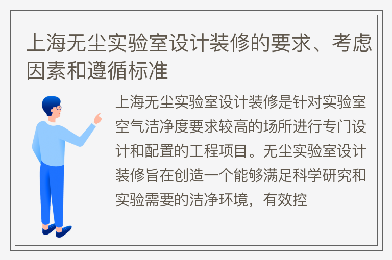 上海无尘实验室设计装修的要求、考虑因素和遵循标准