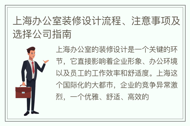 上海办公室的装修设计是一个关键的环节,它直接影响着企业形象、办公环境以及员工的工作效率和舒适度。上海这个国际化的大都市,企业的竞争异常激烈,一个优雅、舒适、高效的......【点击详情】