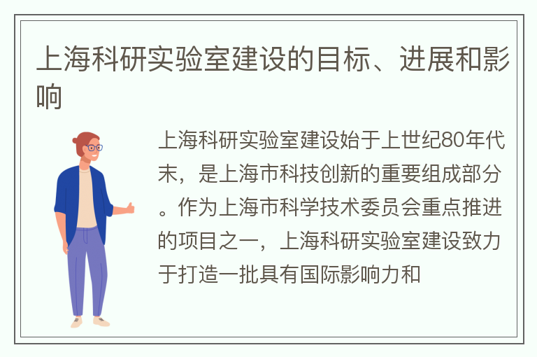上海实验室建设网是关于上海市实验室建设情况的官方网站,致力于提供实验室建设详情及相关政策措施的官方信息平台。 随着上海市经济的快速发展和科技创新的不断推进,实验室建......【点击详情】