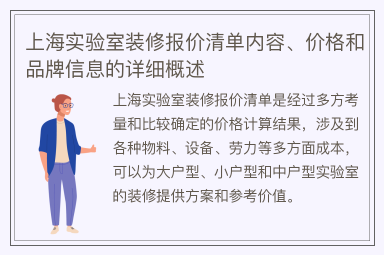 上海实验室装修报价清单内容、价格和品牌信息的详细概述
