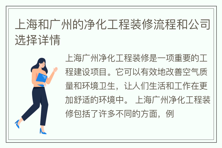 上海广州净化工程装修是一项重要的工程建设项目。它可以有效地改善空气质量和环境卫生,让人们生活和工作在更加舒适的环境中。 上海广州净化工程装修包括了许多不同的方面,例......【点击详情】