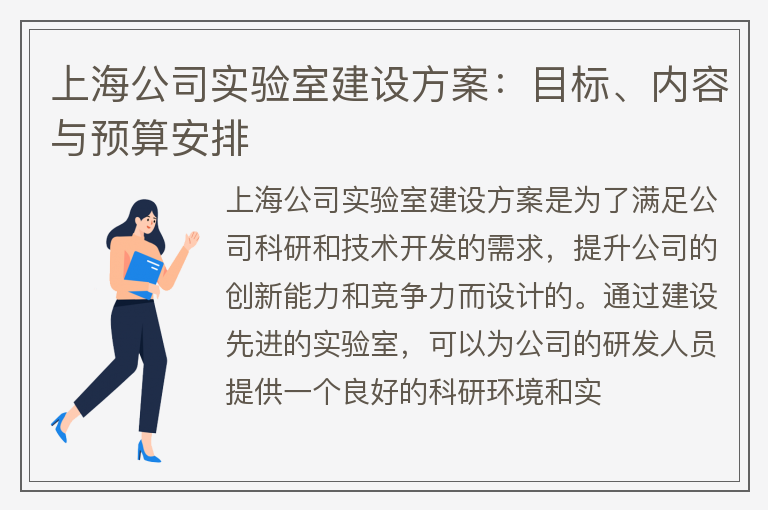 上海公司实验室建设方案是为了满足公司科研和技术开发的需求,提升公司的创新能力和竞争力而设计的。通过建设先进的实验室,可以为公司的研发人员提供一个良好的科研环境和实......【点击详情】