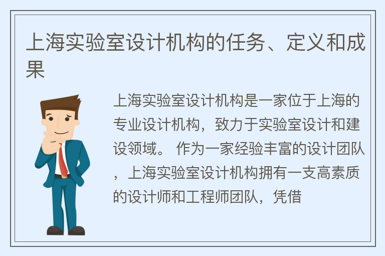 上海实验室设计机构是一家位于上海的专业设计机构,致力于实验室设计和建设领域。 作为一家经验丰富的设计团队,上海实验室设计机构拥有一支高素质的设计师和工程师团队,凭借......【点击详情】