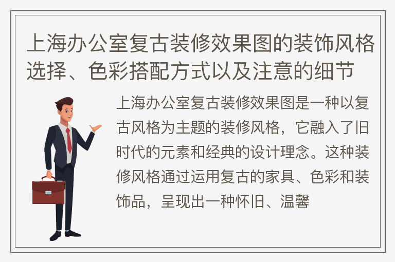 上海办公室复古装修效果图的装饰风格选择、色彩搭配方式以及注意的细节