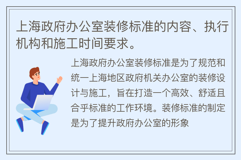 上海政府办公室装修标准的内容、执行机构和施工时间要求。