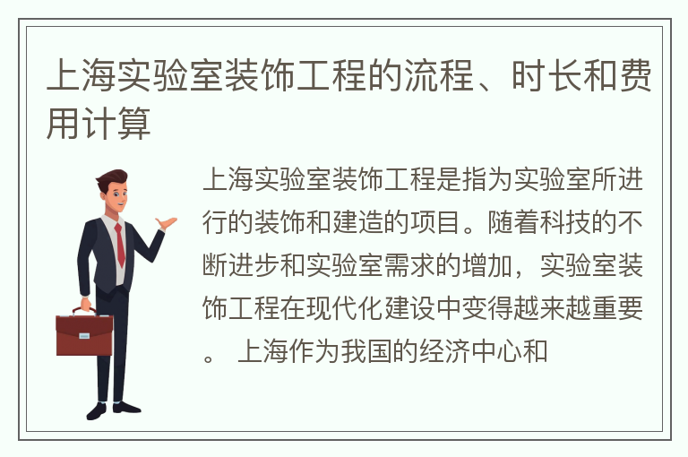 上海实验室装饰工程是指为实验室所进行的装饰和建造的项目。随着科技的不断进步和实验室需求的增加,实验室装饰工程在现代化建设中变得越来越重要。 上海作为我国的经济中心和......【点击详情】
