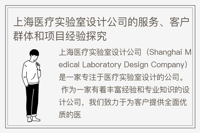 上海医疗实验室设计公司的服务、客户群体和项目经验探究
