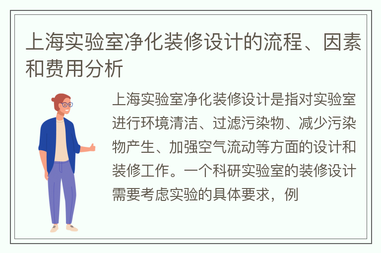 上海实验室净化装修设计的流程、因素和费用分析
