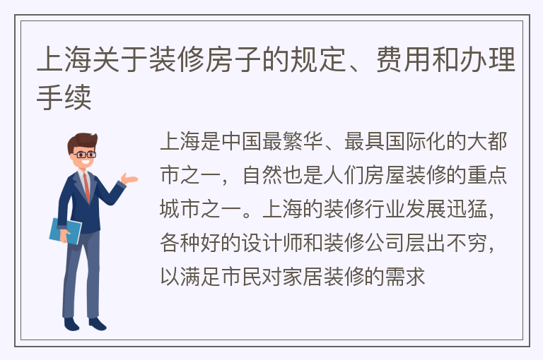 上海关于装修房子的规定、费用和办理手续