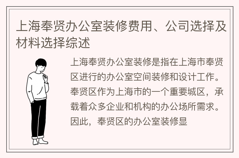上海奉贤办公室装修费用、公司选择及材料选择综述