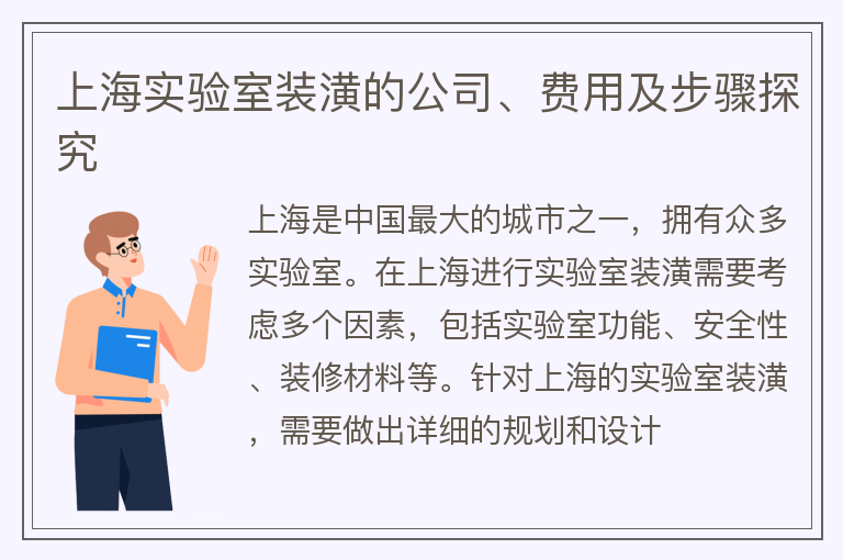 上海实验室装饰装修设计公司的行业前景、价格及相关信息。