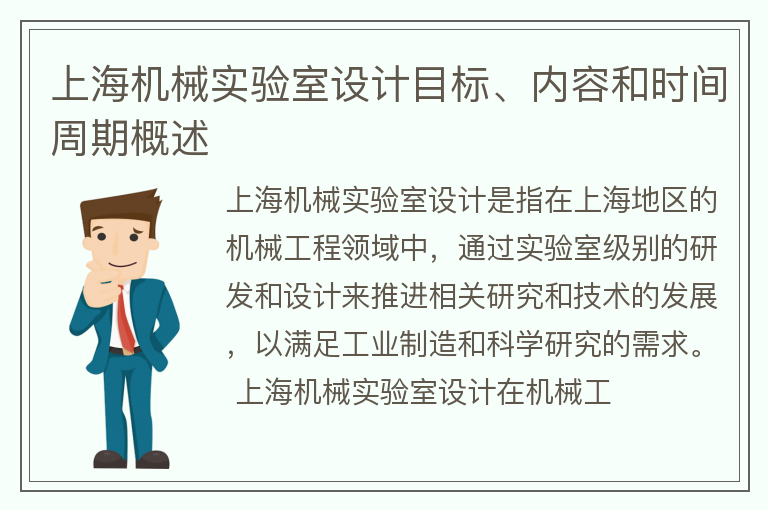 上海机械实验室设计是指在上海地区的机械工程领域中,通过实验室级别的研发和设计来推进相关研究和技术的发展,以满足工业制造和科学研究的需求。 上海机械实验室设计在机械工......【点击详情】