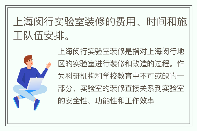上海闵行实验室装修的费用、时间和施工队伍安排。