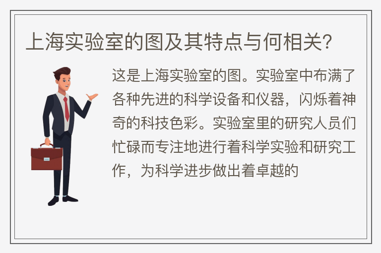 这是上海实验室的图。实验室中布满了各种先进的科学设备和仪器,闪烁着神奇的科技色彩。实验室里的研究人员们忙碌而专注地进行着科学实验和研究工作,为科学进步做出着卓越的......【点击详情】
