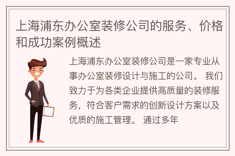 上海浦东办公室装修公司的服务、价格和成功案例概述