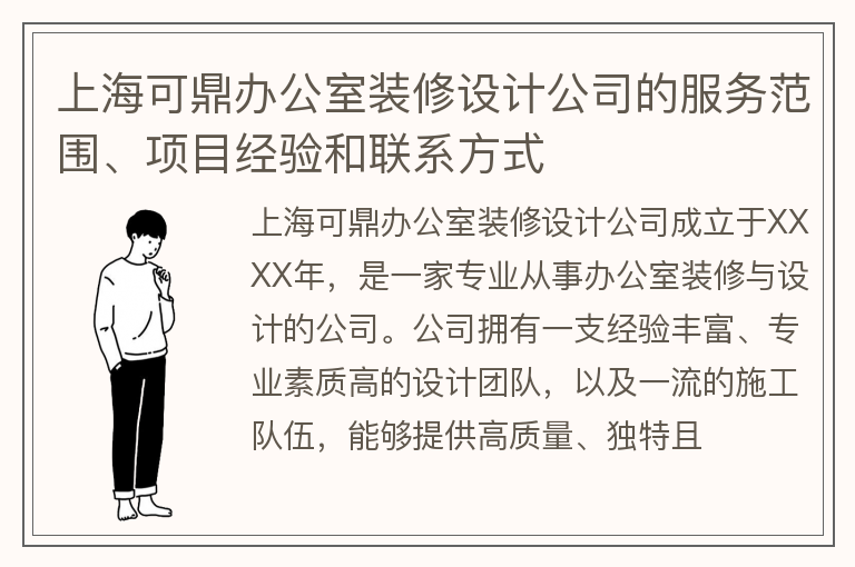 上海可鼎办公室装修设计公司的服务范围、项目经验和联系方式