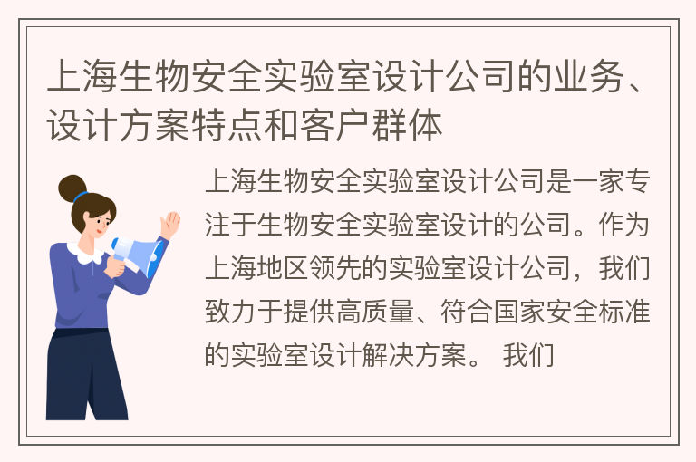 上海生物安全实验室设计公司的业务、设计方案特点和客户群体