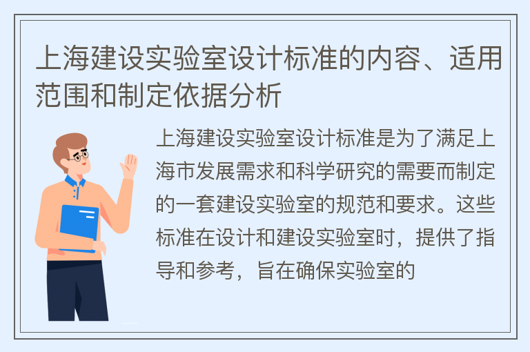 上海建设实验室设计标准的内容、适用范围和制定依据分析