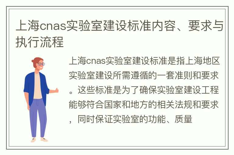 上海cnas实验室建设标准是指上海地区实验室建设所需遵循的一套准则和要求。这些标准是为了确保实验室建设工程能够符合国家和地方的相关法规和要求,同时保证实验室的功能、质量......【点击详情】