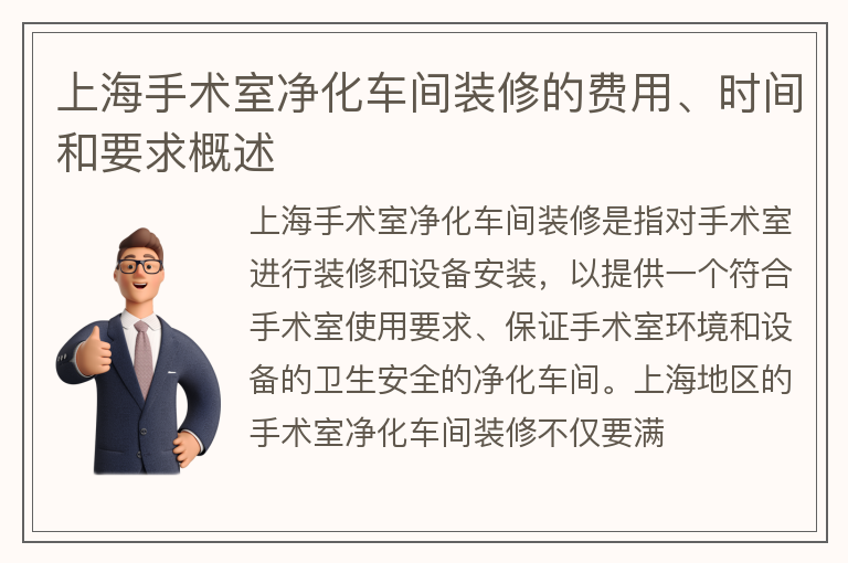 上海手术室净化车间装修是指对手术室进行装修和设备安装,以提供一个符合手术室使用要求、保证手术室环境和设备的卫生安全的净化车间。上海地区的手术室净化车间装修不仅要满......【点击详情】