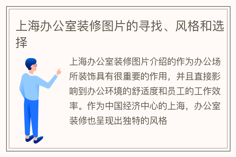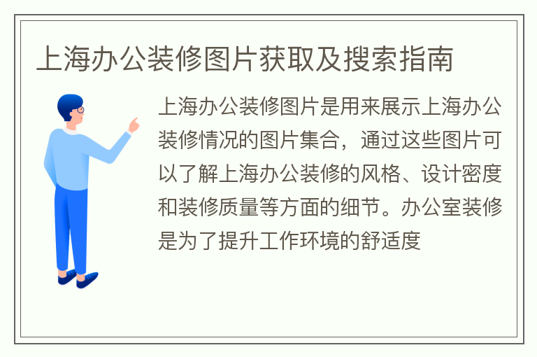 上海办公装修图片是用来展示上海办公装修情况的图片集合,通过这些图片可以了解上海办公装修的风格、设计密度和装修质量等方面的细节。办公室装修是为了提升工作环境的舒适度......【点击详情】