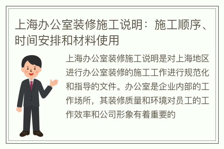 上海办公室装修施工说明:施工顺序、时间安排和材料使用