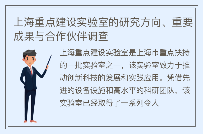 上海重点建设实验室的研究方向、重要成果与合作伙伴调查