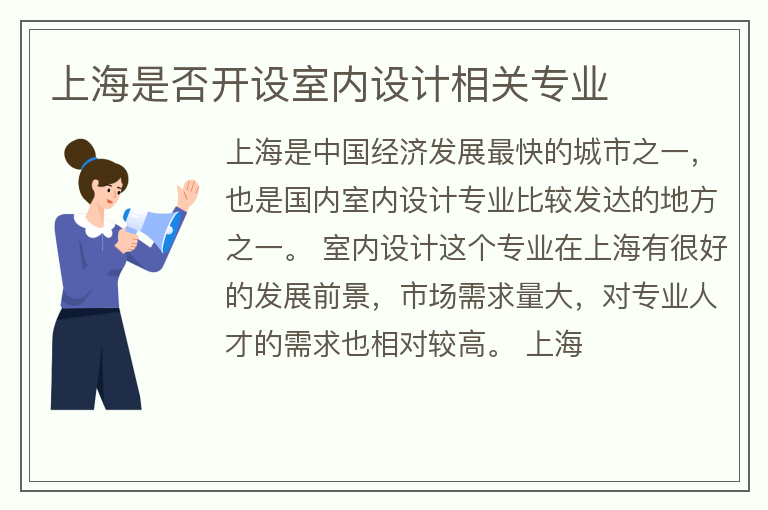 上海是中国经济发展最快的城市之一,也是国内室内设计专业比较发达的地方之一。 室内设计这个专业在上海有很好的发展前景,市场需求量大,对专业人才的需求也相对较高。 上海......【点击详情】