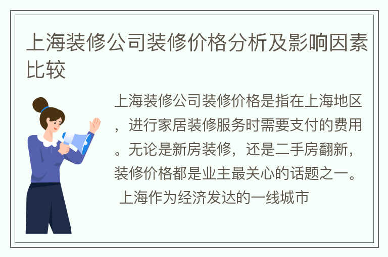上海装修公司装修价格是指在上海地区,进行家居装修服务时需要支付的费用。无论是新房装修,还是二手房翻新,装修价格都是业主最关心的话题之一。 上海作为经济发达的一线城市......【点击详情】