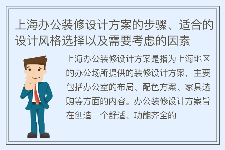 上海办公装修设计方案的步骤、适合的设计风格选择以及需要考虑的因素