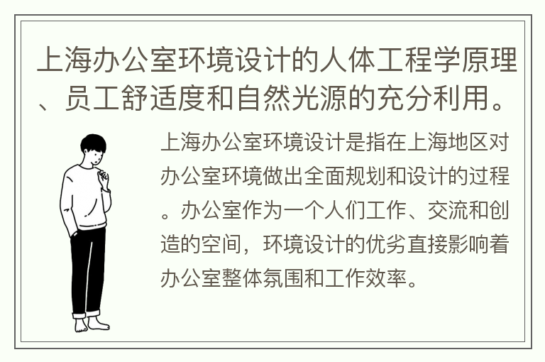 上海办公室环境设计的人体工程学原理、员工舒适度和自然光源的充分利用。