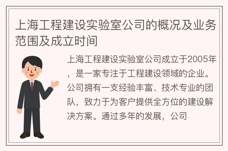 上海工程建设实验室公司的概况及业务范围及成立时间