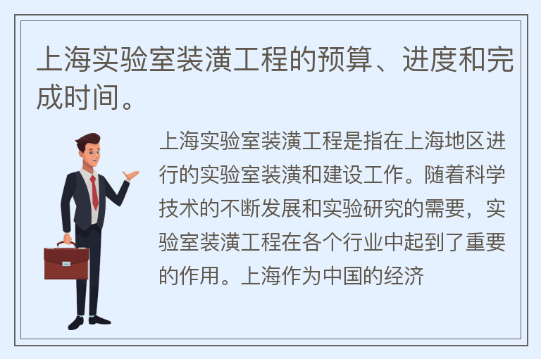 上海实验室装潢工程的预算、进度和完成时间。