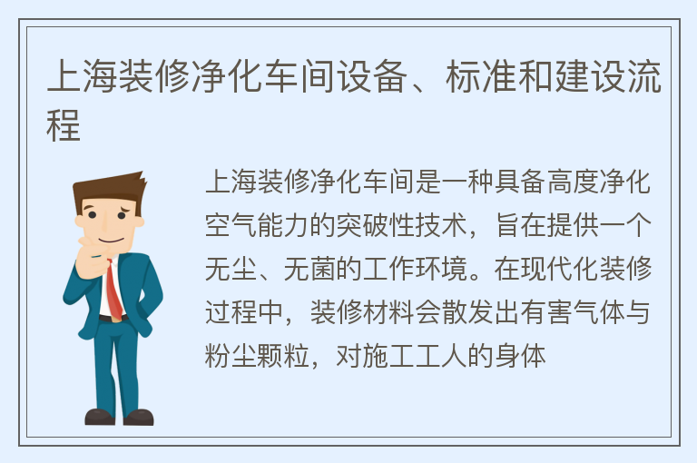 上海装修净化车间设备、标准和建设流程