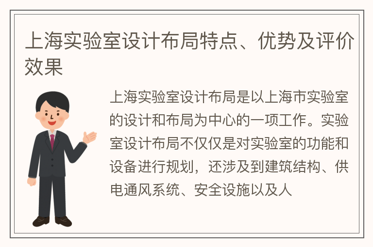 上海实验室设计布局是以上海市实验室的设计和布局为中心的一项工作。实验室设计布局不仅仅是对实验室的功能和设备进行规划,还涉及到建筑结构、供电通风系统、安全设施以及人......【点击详情】