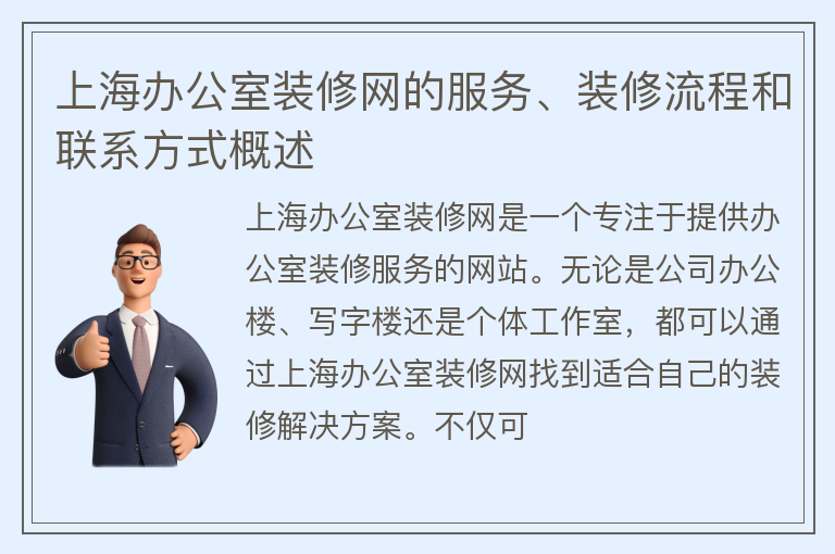 上海办公室装修网是一个专注于提供办公室装修服务的网站。无论是公司办公楼、写字楼还是个体工作室,都可以通过上海办公室装修网找到适合自己的装修解决方案。不仅可......【点击详情】