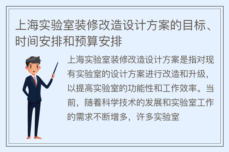 上海实验室装修改造设计方案的目标、时间安排和预算安排