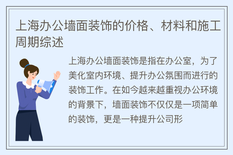 上海办公墙面装饰是指在办公室,为了美化室内环境、提升办公氛围而进行的装饰工作。在如今越来越重视办公环境的背景下,墙面装饰不仅仅是一项简单的装饰,更是一种提升公司形......【点击详情】