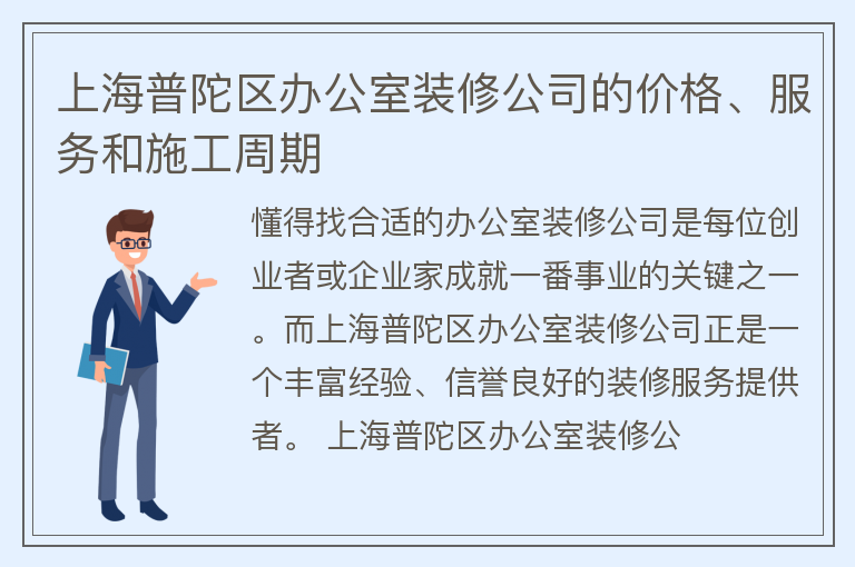 上海普陀区办公室装修公司的价格、服务和施工周期