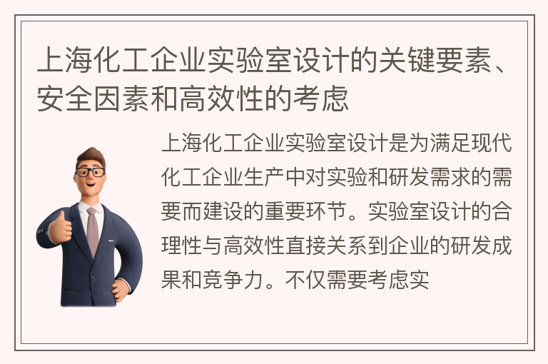 上海化工企业实验室设计的关键要素、安全因素和高效性的考虑