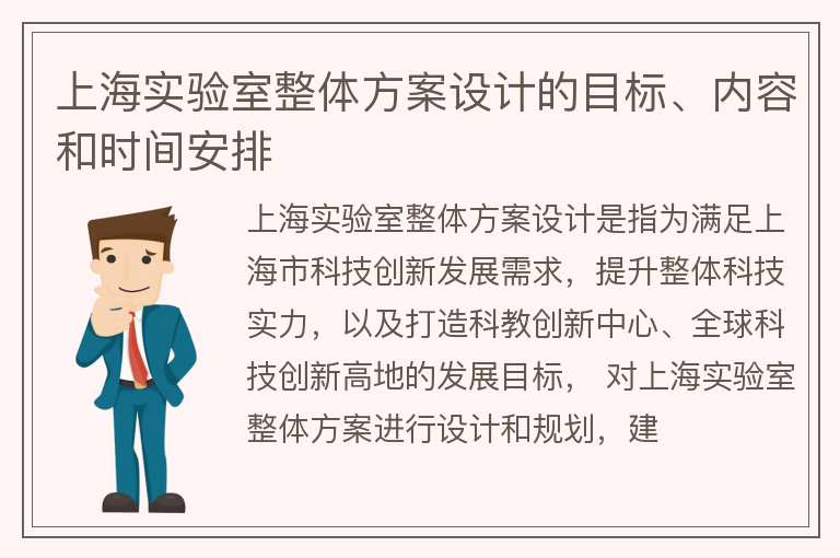 上海实验室整体方案设计是指为满足上海市科技创新发展需求,提升整体科技实力,以及打造科教创新中心、全球科技创新高地的发展目标, 对上海实验室整体方案进行设计和规划,建......【点击详情】