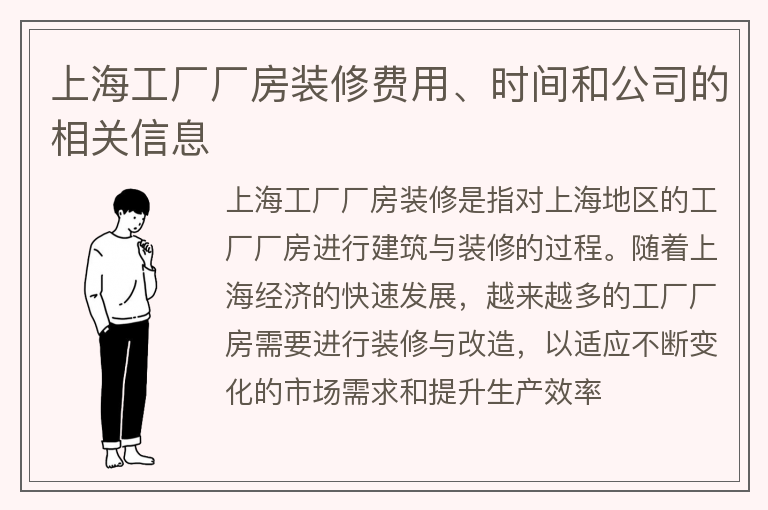 上海工厂厂房装修费用、时间和公司的相关信息