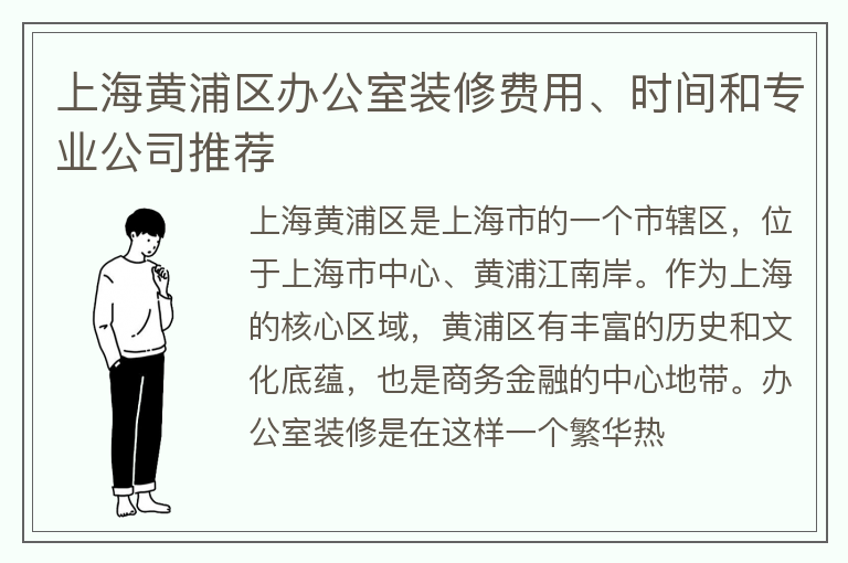上海黄浦区办公室装修费用、时间和专业公司推荐