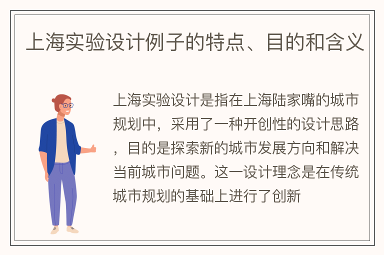上海实验设计例子的特点、目的和含义