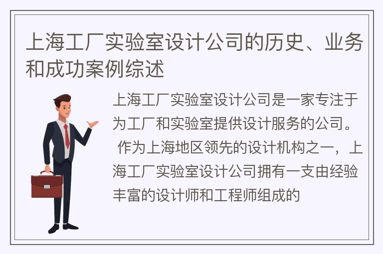 上海工厂实验室设计公司的历史、业务和成功案例综述